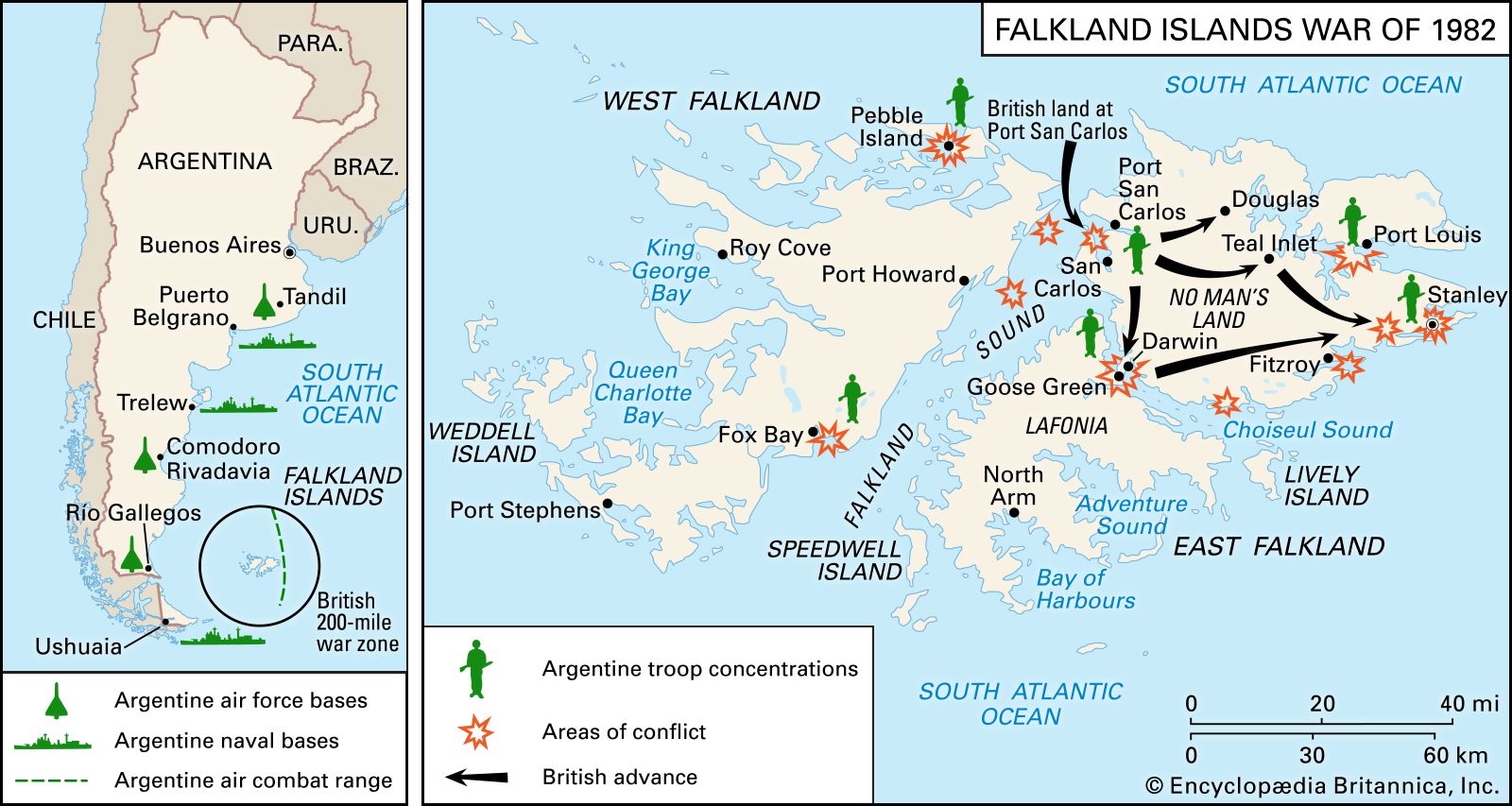 Em 1982, o Reino Unido entrou em guerra com a Argentina pelas Ilhas Malvinas.